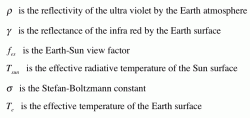 We take the following estimates (EWAGs) for the uncertainties; the ultra violet reflectivity varies by plus or minus 5 %, the infra red reflectance also by 5 %, and the Sun temperature by plus or minus 50 K, we get the following ranges for the quantities