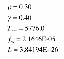 and we’ll take the Earth-Sun view factor to be known with precision. The value for the luminosity of the Sun has been calculated using the listed value for the Sun temperature.